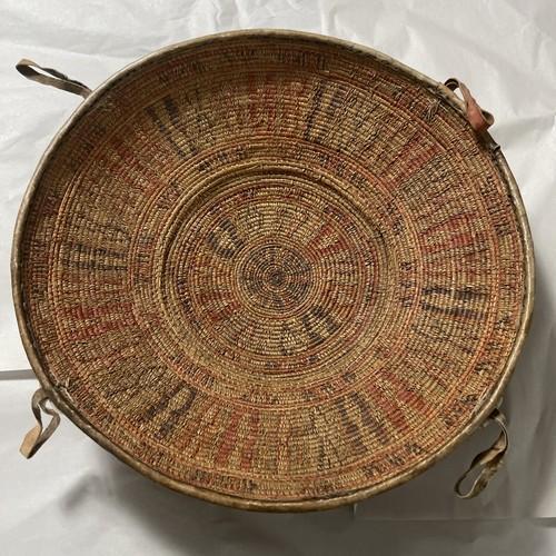 Vintage Ethiopian African Harari Woven Basket w/ Leather...