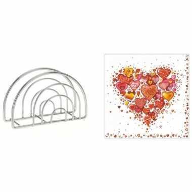 Valentijn tafelversiering harten print servetten in houder...