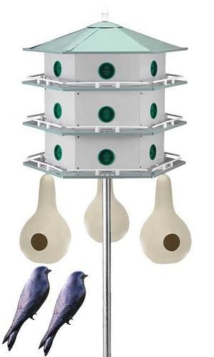 Heath 12-Room Two-Story Purple Martin House with Pole, 4 Gourds...