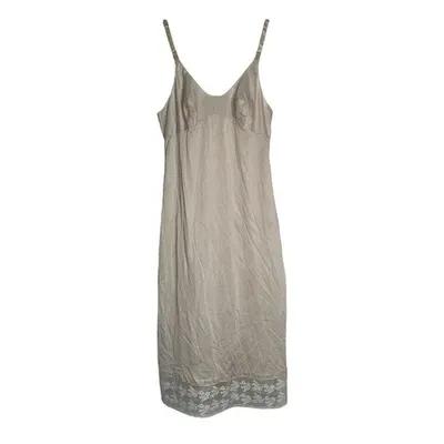 Vintage 60s Nylon Full Slip Dress Lace Hem Lingerie Sears Beige...