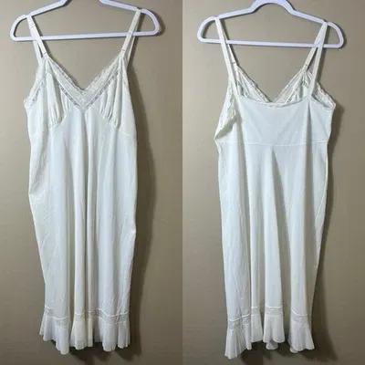 Vintage Ivory Slip Dress Lace Trim & Pleated Hem Cottagecore...