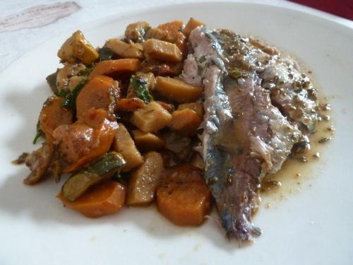 Chinchard aux herbes (cousin du maquereau) garniture carotte et...
