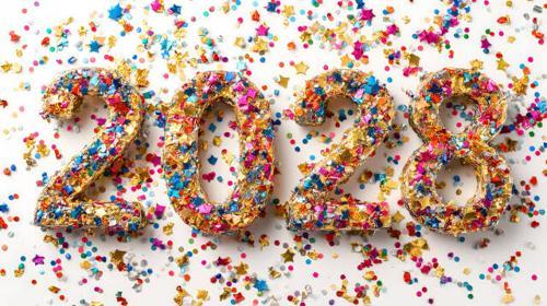 Jahreszahl 2028 aus Konfetti auf weißem Hintergrund –...