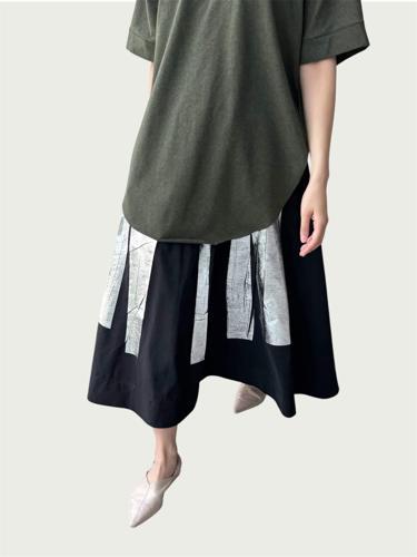 Full Tempo Maxi Skirt in Black with Silver Foil– Hoi Bo