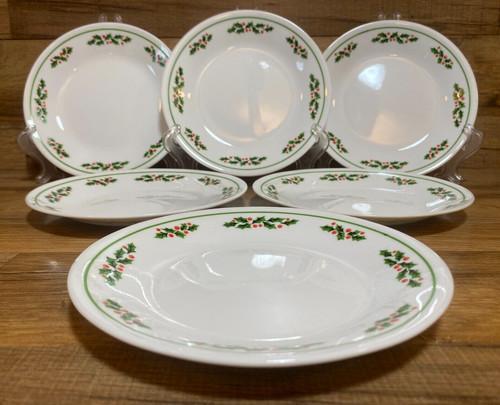 SET OF 6 - CORNING CORELLE - HOLLY DAYS - BLACK VEIN 6 3/4...