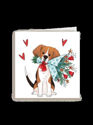 valentijnskaart getekende hond met bos bloemen | Hallmark