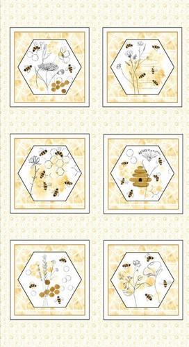 Honey Bee Fabric Royal Jelly Bees Honeycomb Cotton Blank...