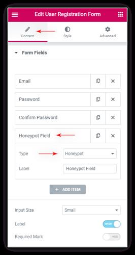 Honeypot field in User Registration Form for Elementor