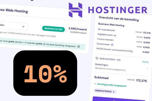 Couponcode Hostinger: 10% Exclusief - Webhosters
