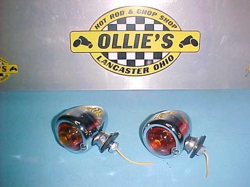 BULLET STYLE LIGHTS AMBER GLASS LENSES HOT ROD TROG HARLEY...