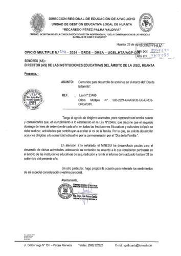 OFICIO MÚLTIPLE Nº 0260 – 2024-GRDS-DREA-UGEL.HTA/AP-DIR