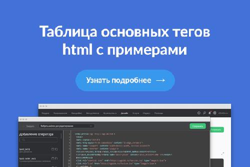 Таблица основных тегов html с примерами