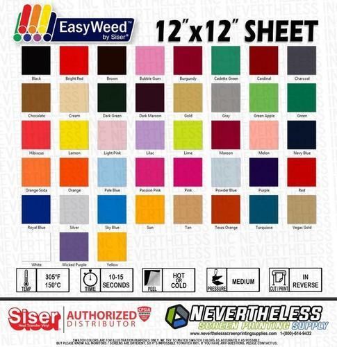 SISER Easyweed HTV Heat Transfer Vinyl - 12"x12" Sheet Iron On...