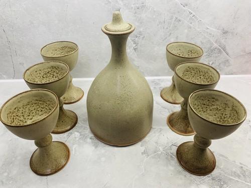 Louis Hudson Pottery Vintage Decanter & 6 Goblets 1970s Cornish...