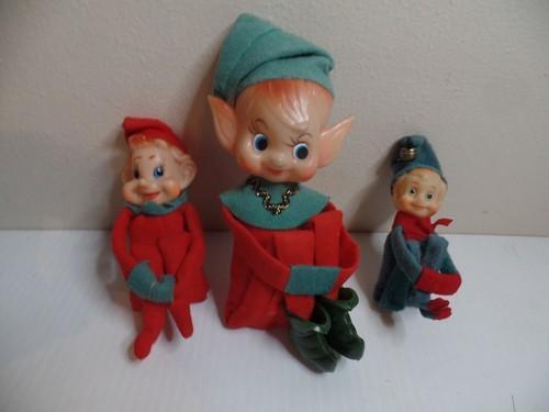 Lot Of 3 Vintage Christmas Knee Hugging Elves Elf Pixie Rubber...