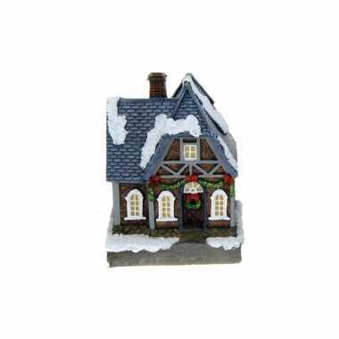 1x polystone kersthuisjes/kerstdorpje huisjes blauw dak met...
