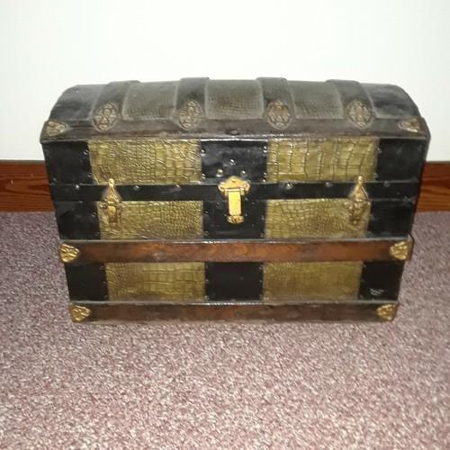 Antique Victorian Embossed Metal Wood Camelback Humpback...