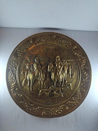 Vintage Brass Repousse Embossed Wall Plate Fox Hunt Scene 15...