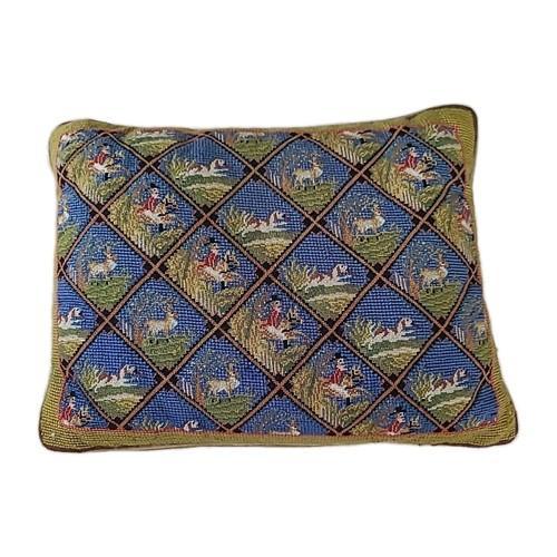 Equestrian Fox Hunt Needlepoint & Velvet Pillow With Insert CJ...