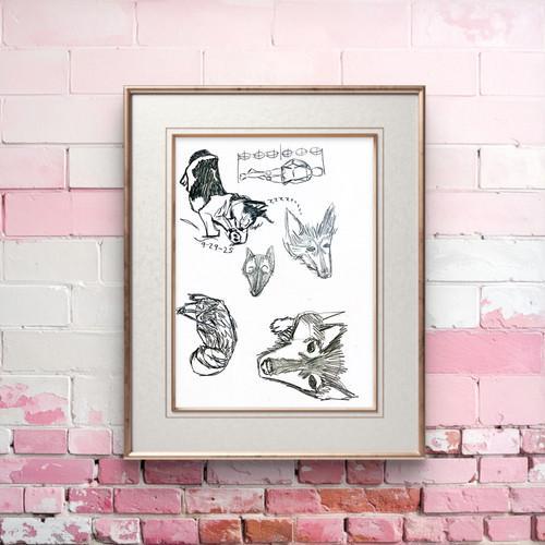KINGHORN RANDOM SKETCHBOOK DRAWING 8" X 10" ANIMAL HUSKY AND...