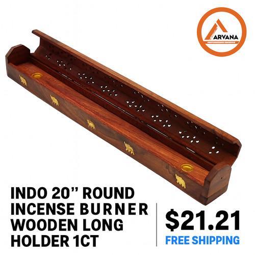 INDO 20" Round Wooden Incense Burner Long Holder – 1CT