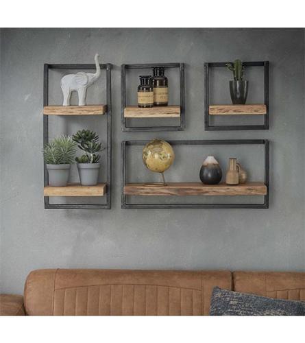 Orianna wandrek industrieel mangohout vierkant zwart 70cm |