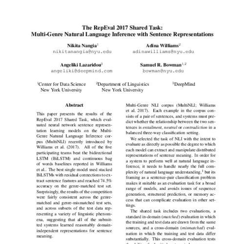 The RepEval 2017 Shared Task: Multi-Genre Natural Language...