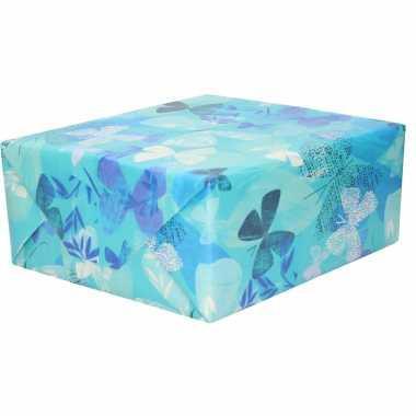 Inpakpapier/cadeaupapier wit blauwe bladeren/vogels print 200 x...