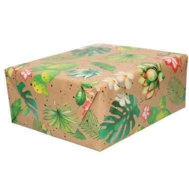 Inpakpapier/cadeaupapier bruin bloemen en bladeren urban nature...