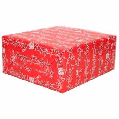 Inpakpapier/cadeaupapier rood met happy birthday tekst print...