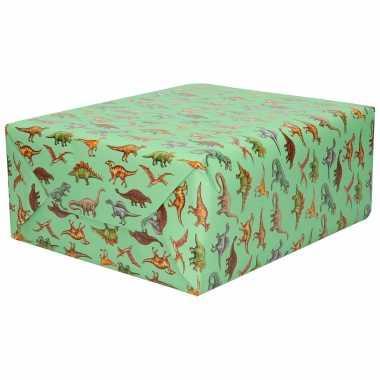 Inpakpapier/cadeaupapier groen dinosaurussen 200 x 70 cm...