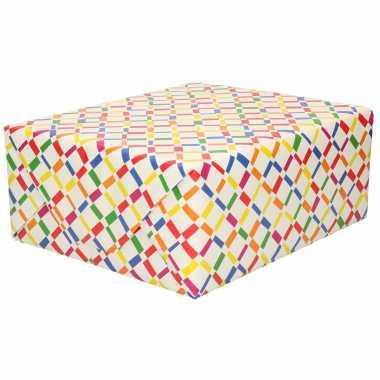 Inpakpapier/cadeaupapier wit gekleurde ruitjes/staafjes 200 x...