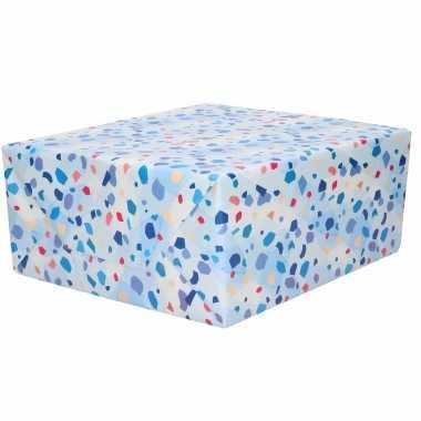 1x inpakpapier/cadeaupapier blauw met steenachtige stippen...