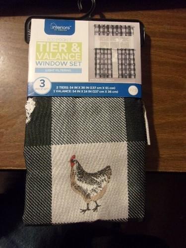 INTERIORS~CHICKENS on BLK/WHITE~3 PC. TIER & VALANCE CURTAIN...