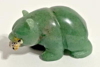 Alaskan Inuit 1 3/4" Carved Jadite Stone Bear w/ Fish Fetish...