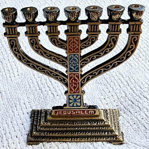 Menorah Brass Israel Hen Holon Miniature 3-1/2" (#676)