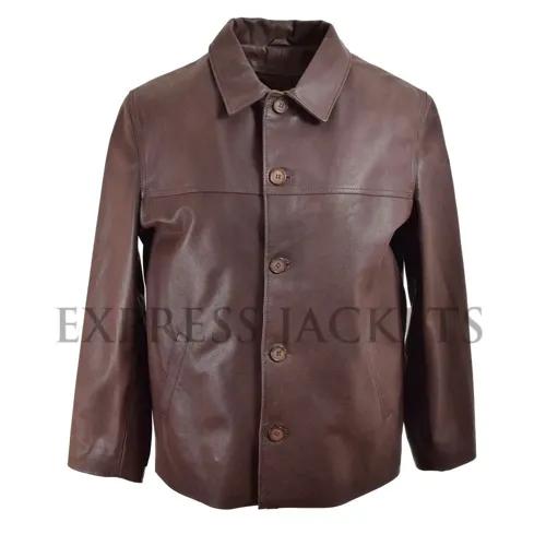 Mens Dark Brown Casual Leather Jacket - Danezon