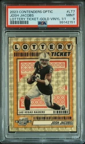 2023 Contenders Optic Josh Jacobs True 1/1 Gold Vinyl Prizm PSA...