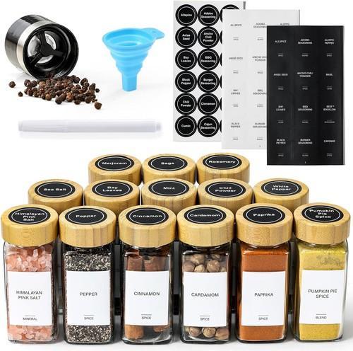 14 Pcs Spice Jars with Bamboo Lids - 4Oz Square Spice Bottles...