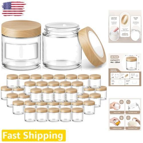 Durable 4 oz Glass Jars 48pk Bamboo Lids Airtight Cosmetic...