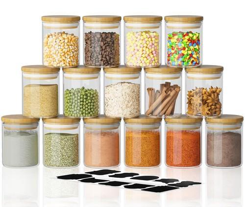 15 Piece Glass Storage Jars Set with Airtight Bamboo Lids and...