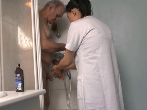 Grand, jeune, asiatique infirmière massage et massage baise...