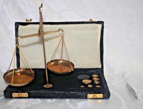 Small Vintage India BRASS Jewelers Travel SCALE w Weights In...