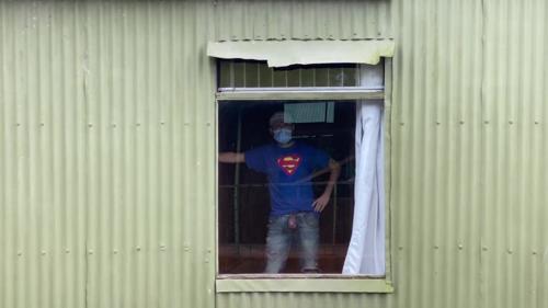 Plucky getting off by the window with jizz shot