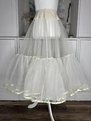 1980s Betsey Johnson Cream Crinoline Punk Rock Satin Edge...