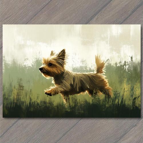 Art Print White Yorkshire Terrier Leaping Joy Green Painted...