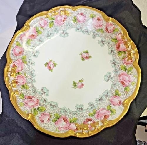 Antique vtg JPL Limoges France Plate Handpainted Pink Roses...