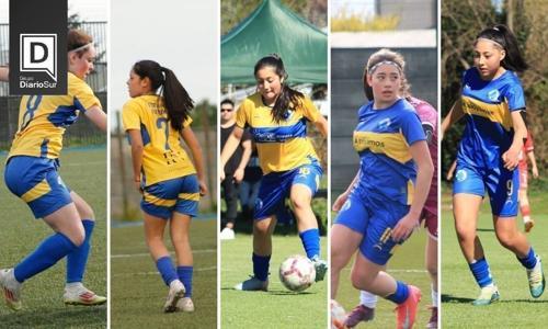 Cinco jugadoras de la Escuela Femenina de A.N.F.A. Futrono...