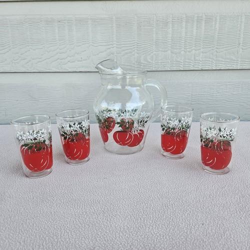 Vintage 1950s Bartlett-Collins Tomato Juice Pitcher And 6 Juice...
