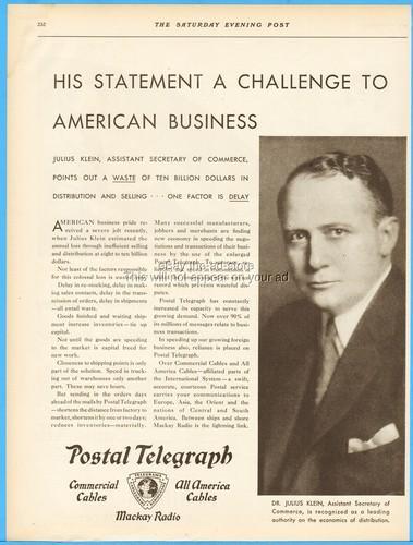 1929 Dr Julius Klein Postal Telegraph Commercial Cables Mackay...